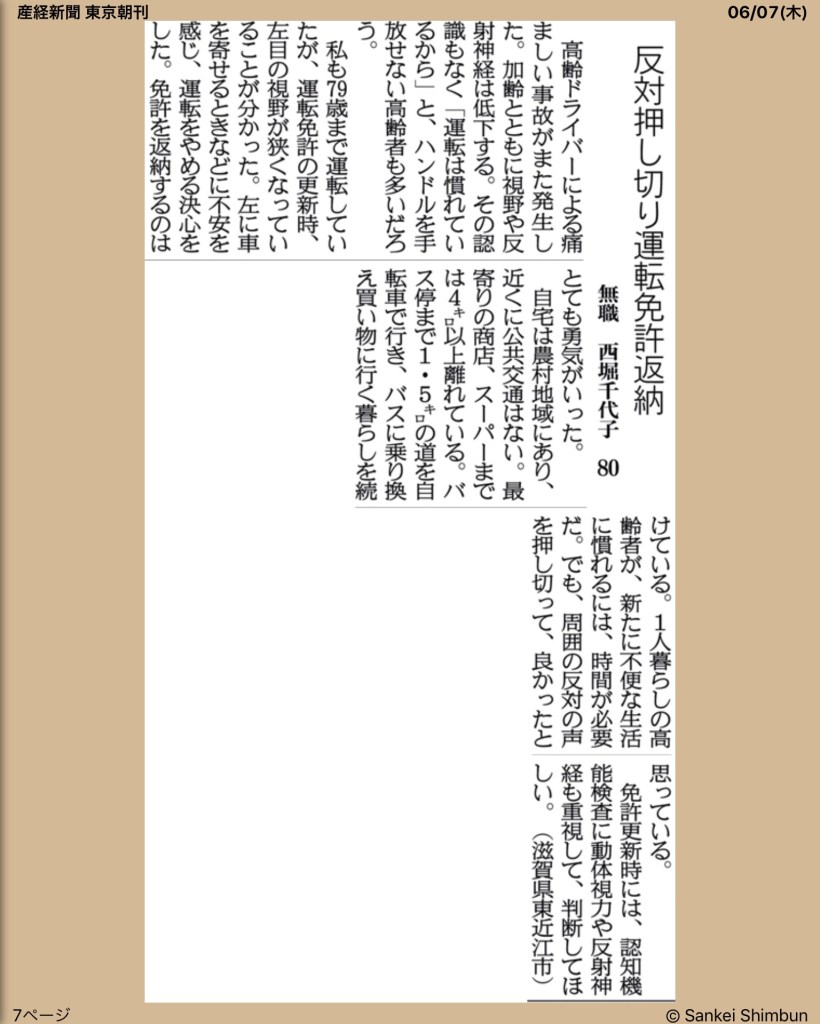 高齢者が安心して暮らせるように、車の全自動運転化、運転技能の再訓練など、できることはいっぱいある。