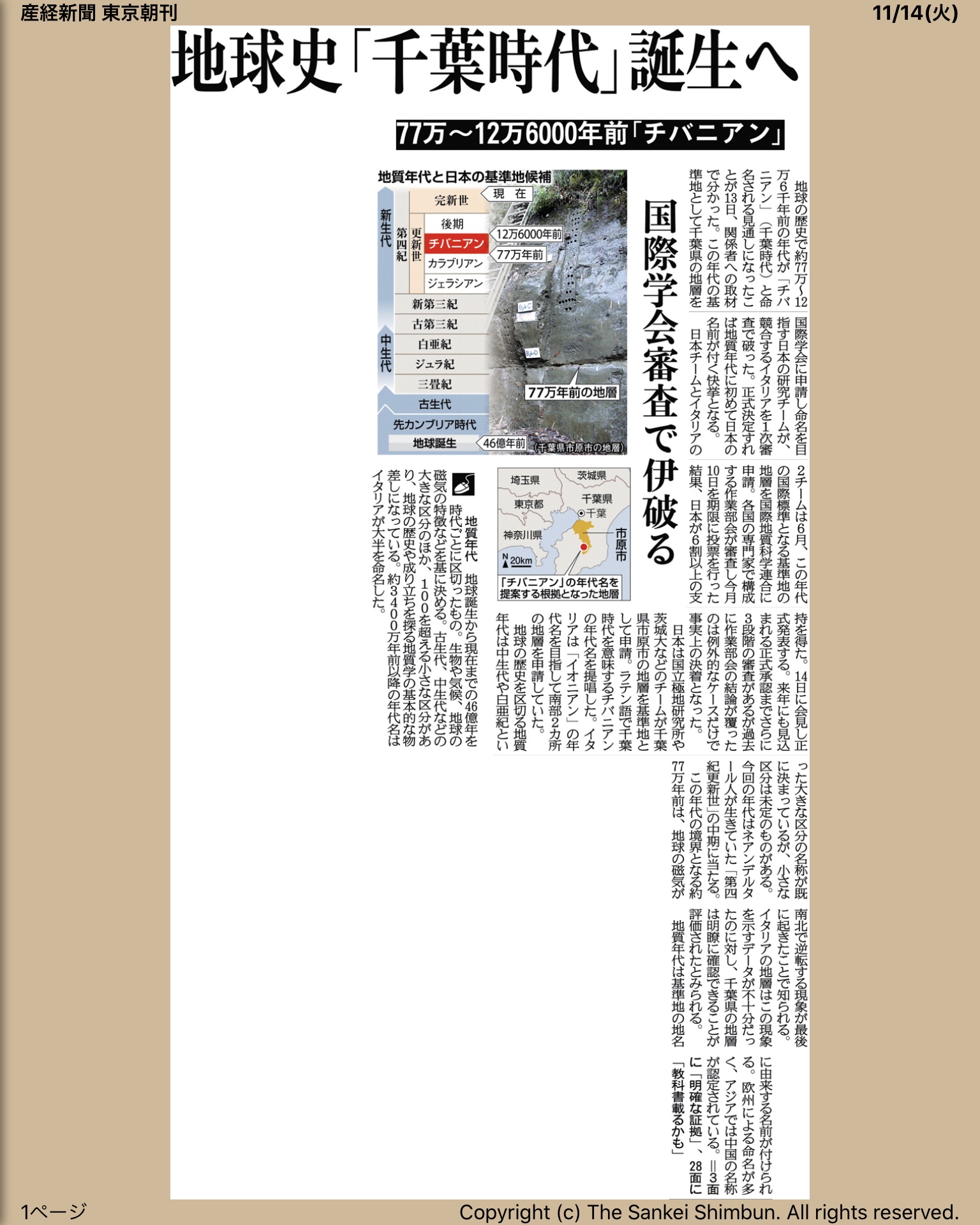 地軸の逆転がどうとか、なんだかわからない。説明を聞いても、生チバニアンを見ても、いまいちピンとこない。でも、世界史に名を残す歴史的偉業なんです。だって千葉時代ですよ。