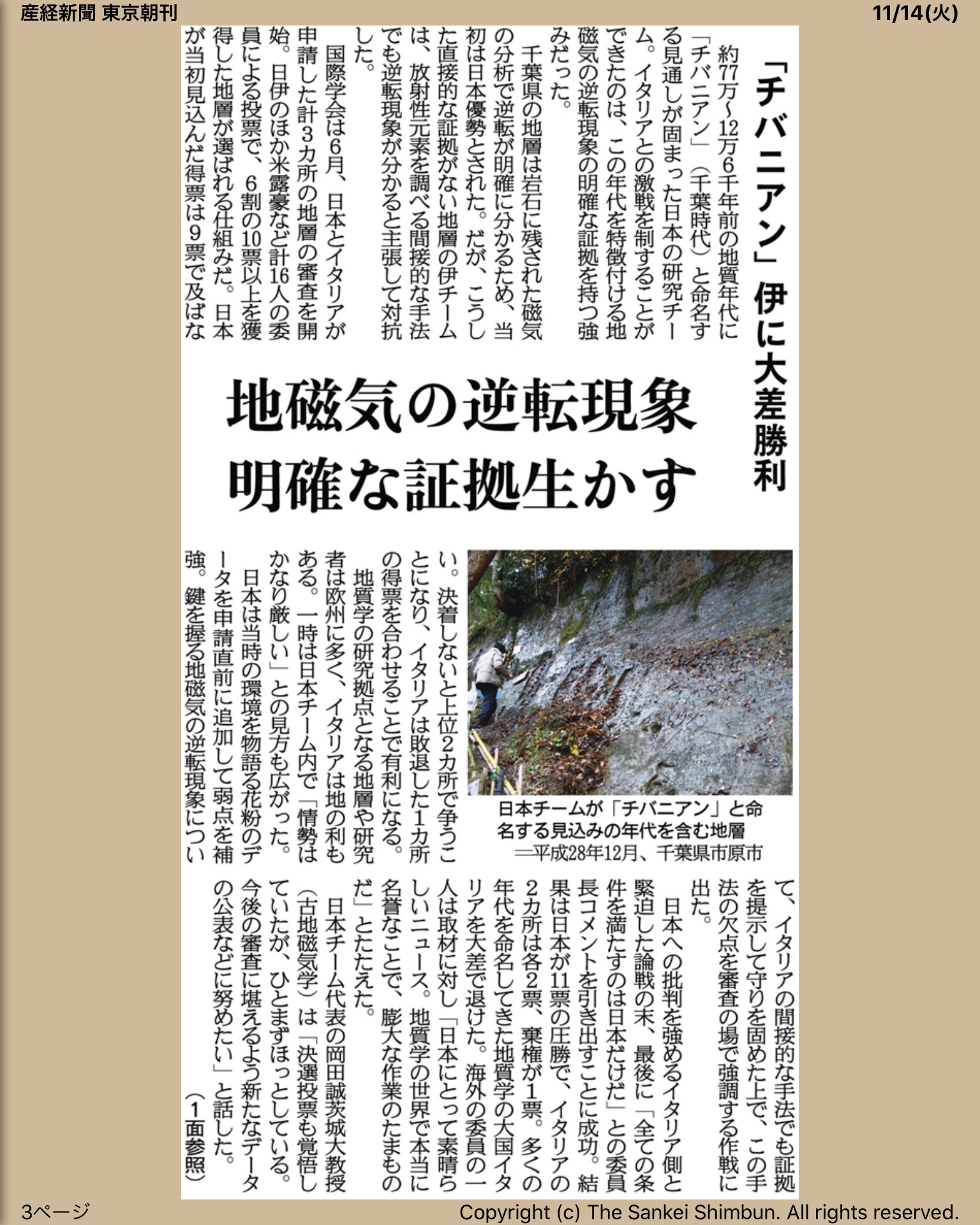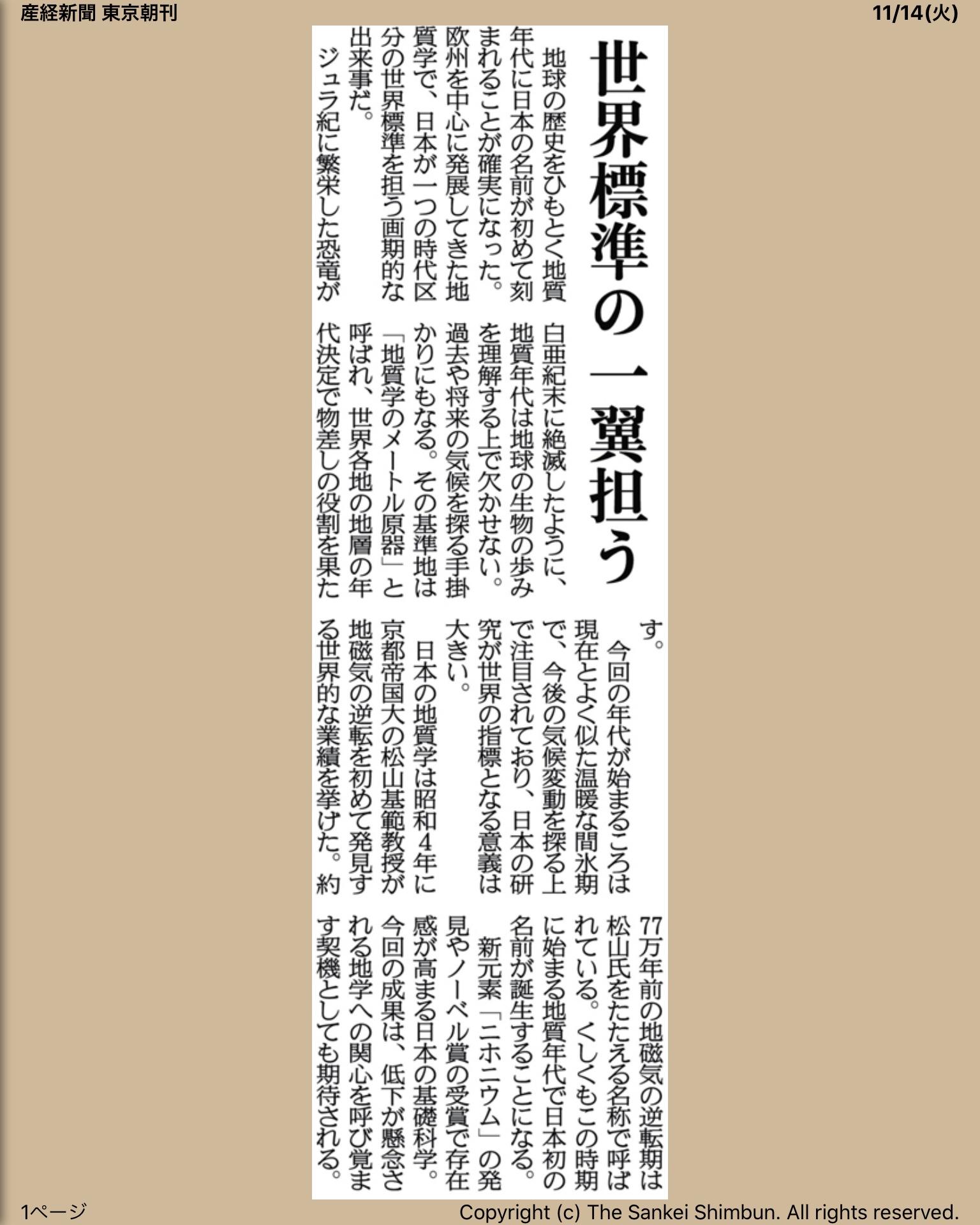 産経新聞朝刊2017 年11月14日