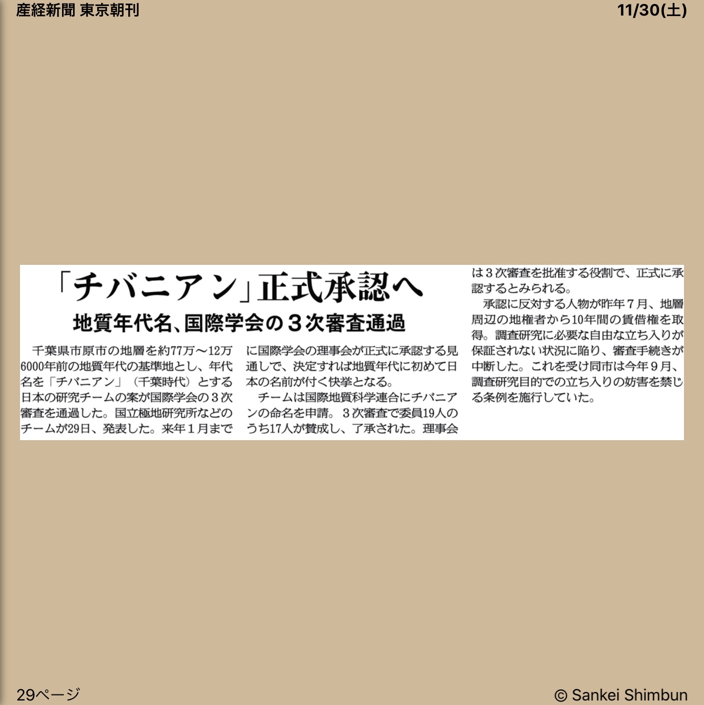 産経新聞朝刊 2019年11月30日