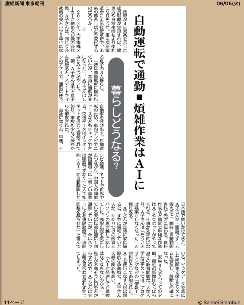 マイカーの自動運転などなど。