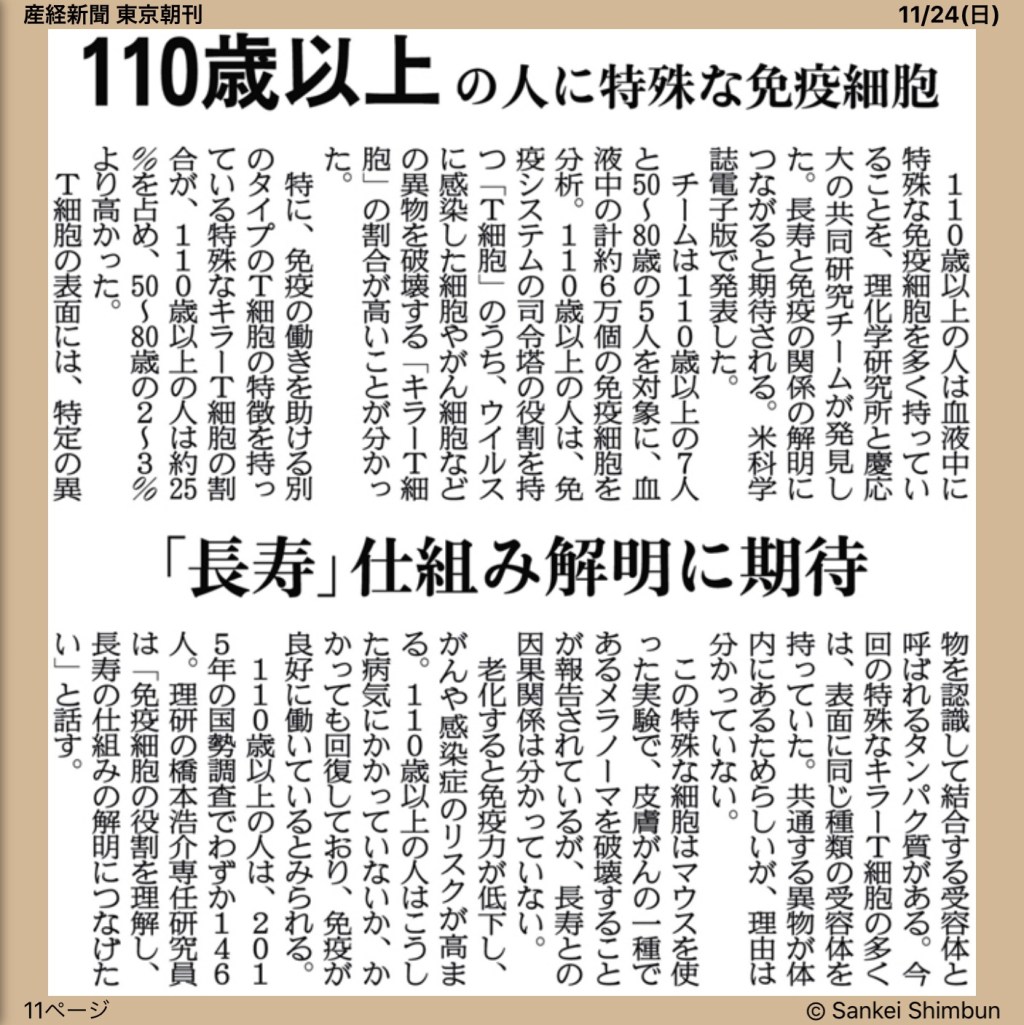 ちなみに、110歳以上を目指すと、免疫細胞の壁があるかも知れません。こちらは、今後、秘密が解明されるでしょう。