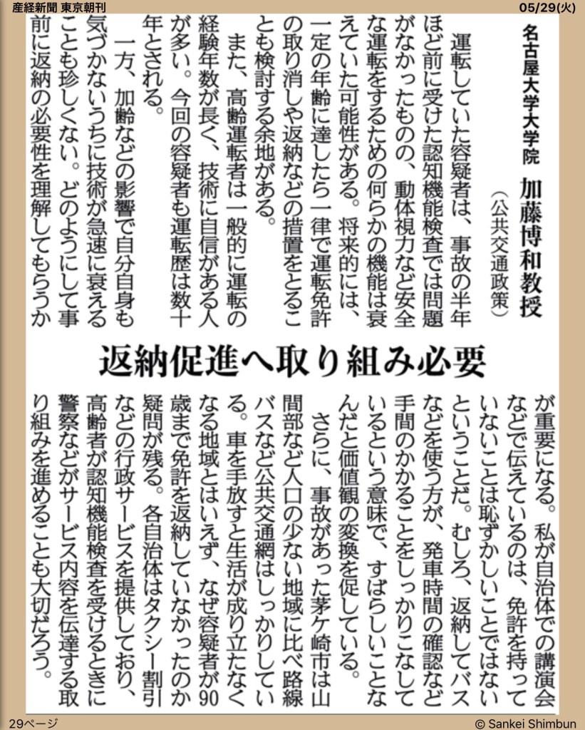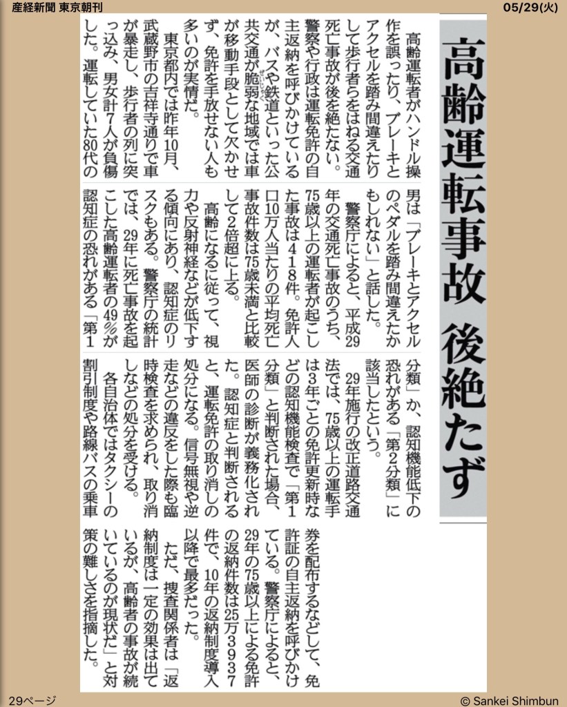 僕は車の運転に年齢制限を設けるのは反対ですが、高齢運転事故はもはや深刻な社会問題になっており、高齢者の日常生活を支えるために公道が恐怖の戦場になるのは阻止しなければいけません。